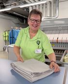 Und nach 40 Jahren bin ich immer noch hier. In der Wäscherei arbeiten wir im Turnus. Jede von uns macht alles: sortieren, waschen, glätten, ausbessern, verteilen. Ich mag die Abwechslung und das Miteinander. Auch nach der Pensionierung gibt mir die Arbeit viel – es tut gut, eine Aufgabe zu haben.